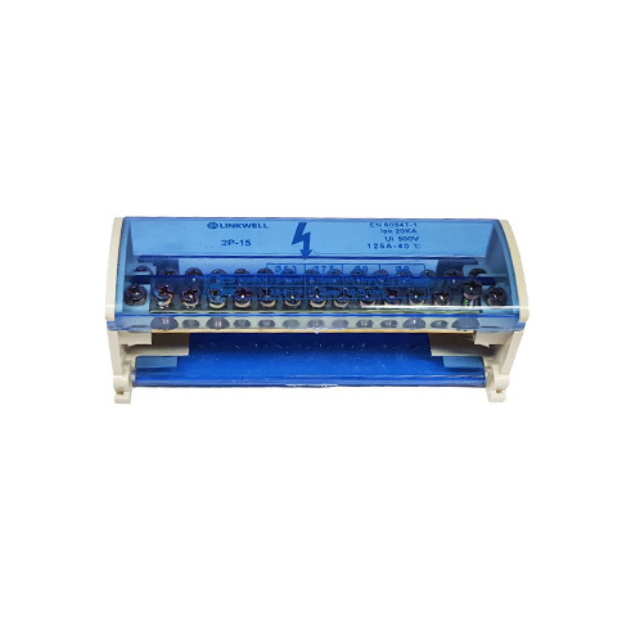 Klemmiplokk 125A 2 x (3x16mm2 + 1x25mm2 + 11x6mm) DIN, Linkwell