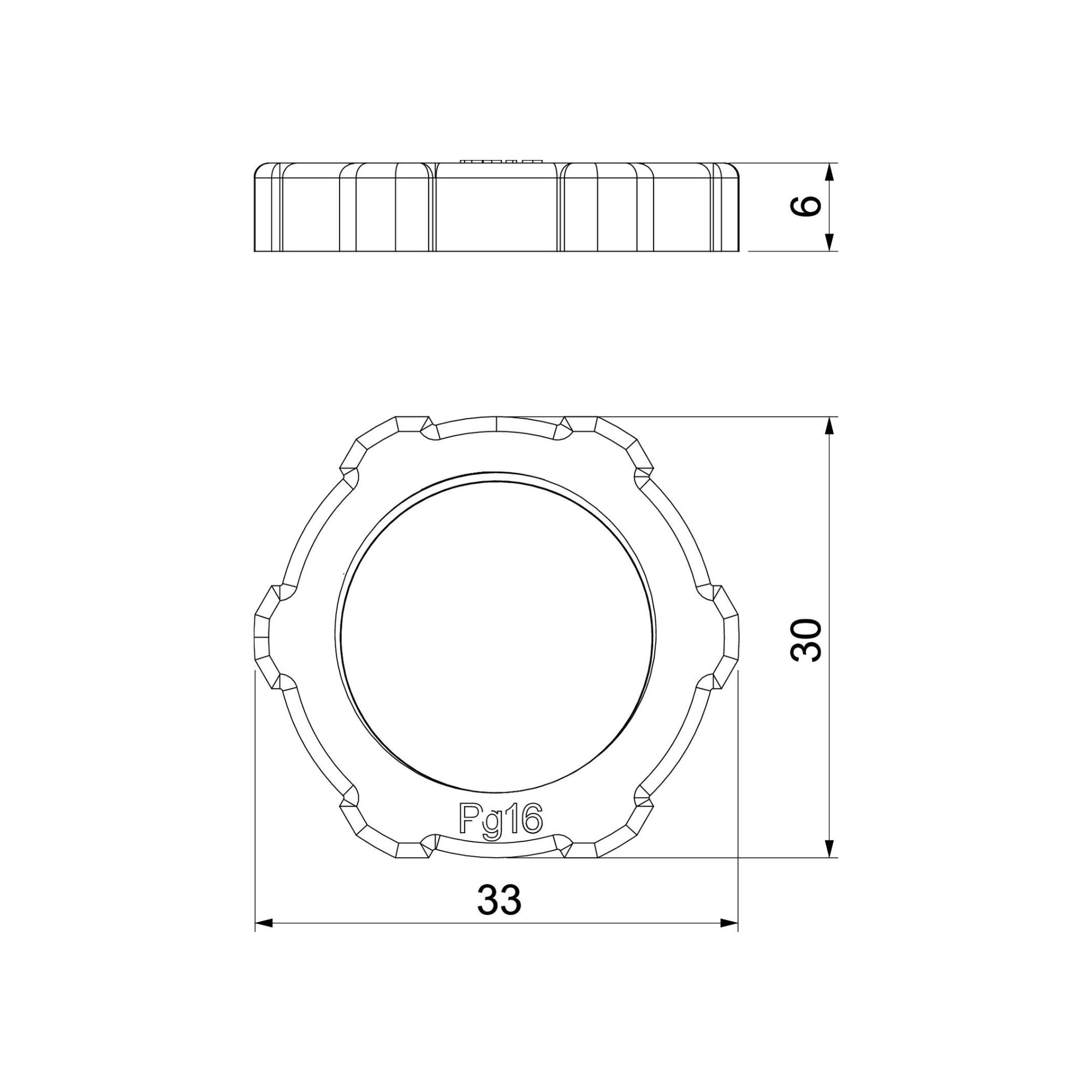 Standardile DIN 46320 vastav kontramutter, standardile DIN 40430 vastava PG-keermega.
