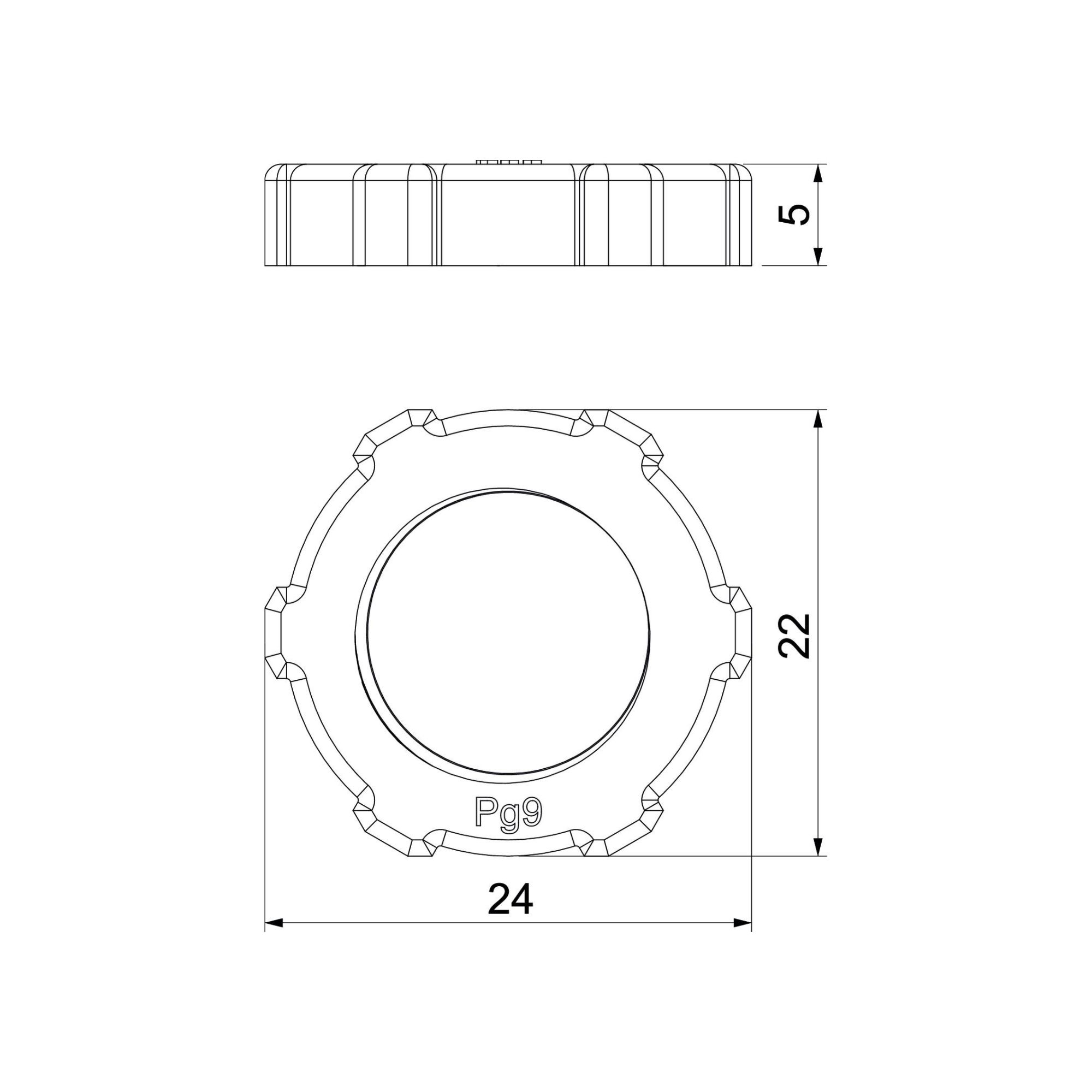 Standardile DIN 46320 vastav kontramutter, standardile DIN 40430 vastava PG-keermega.