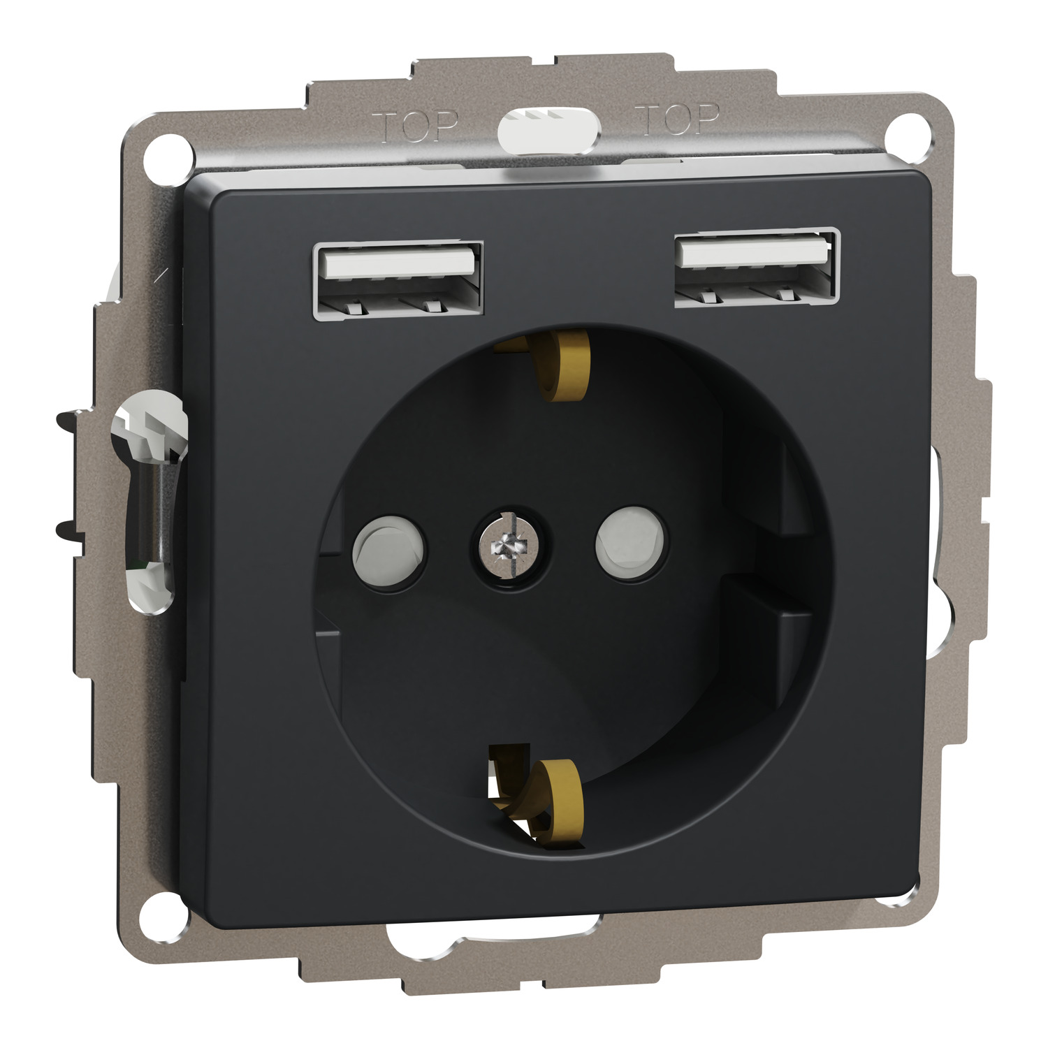 Pistikupesa 1ne +2* USB laadija süv. antratsiit Sedna